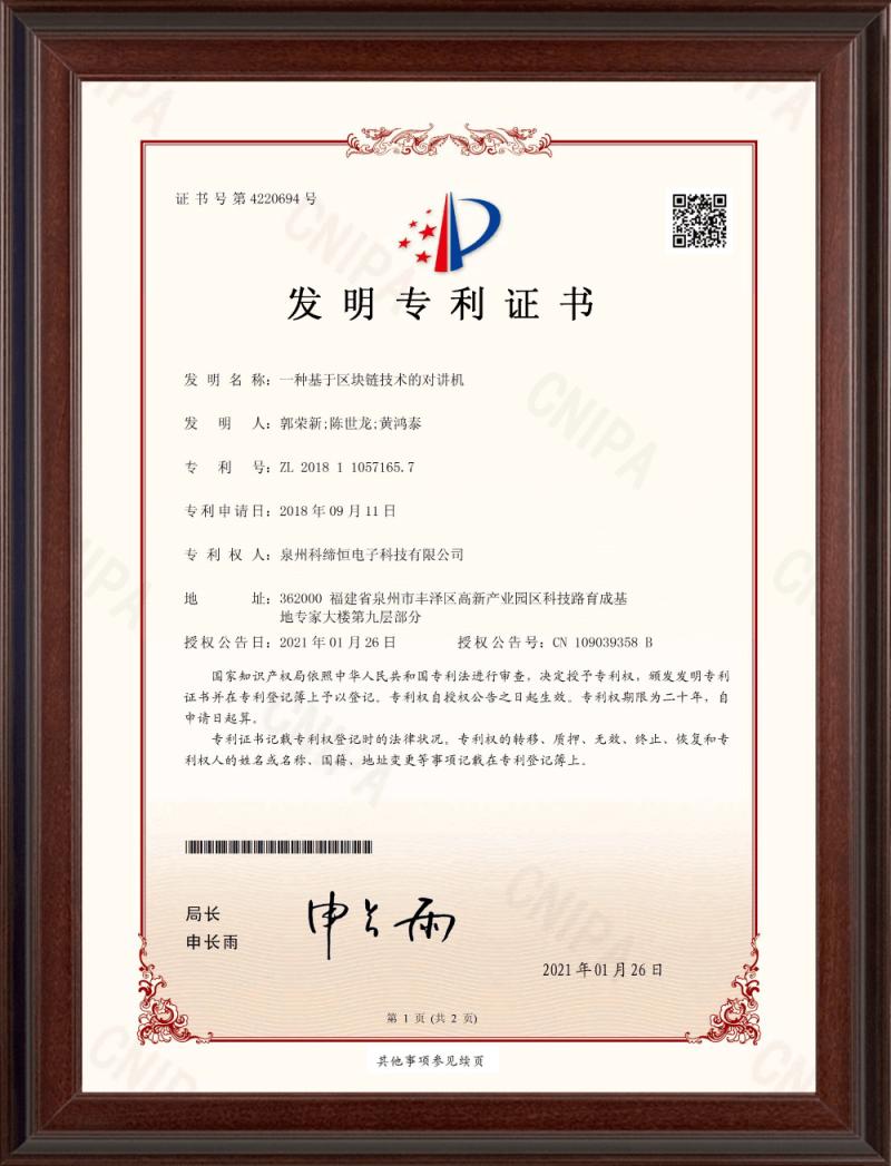 發(fā)明專利(一種基于區(qū)塊鏈技術(shù)的對講機)